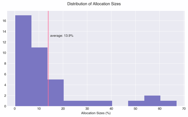 中位数分配规模约为 10%,这使我们得到了相对均匀的 19 个小空投和 21 个大空投。
