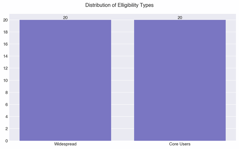 「资格类型」分为「广泛用户」和「核心用户」。在前者中,协议向普通生态系统用户空投代币,例如,新的 DePIN 协议向在固定时间内参与过其他 DePIN 协议的钱包空投代币,或向特定的链上社区(如 NFT)空投代币。在后一种情况下,协议只奖励直接参与协议前代币的用户。从根本上说,这些方法区分了两种选择:空投应该主要作为营销和增长工具,还是应该重点奖励那些在协议启动过程中最活跃的用户?