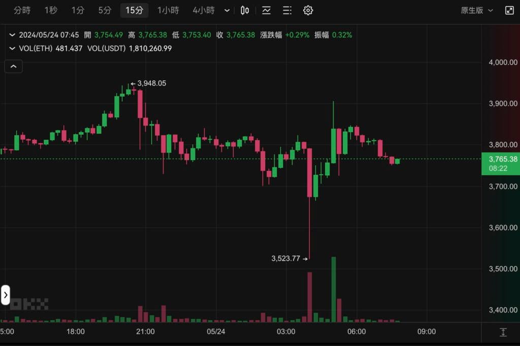 至于市场走势部分,以太坊在清晨四点多时,疑似因为网上传言「SEC 将现货以太坊 ETF 决议延后 6 小时」而一度插针 3,523 美元,不过后来谣言被驳斥后有所回升。