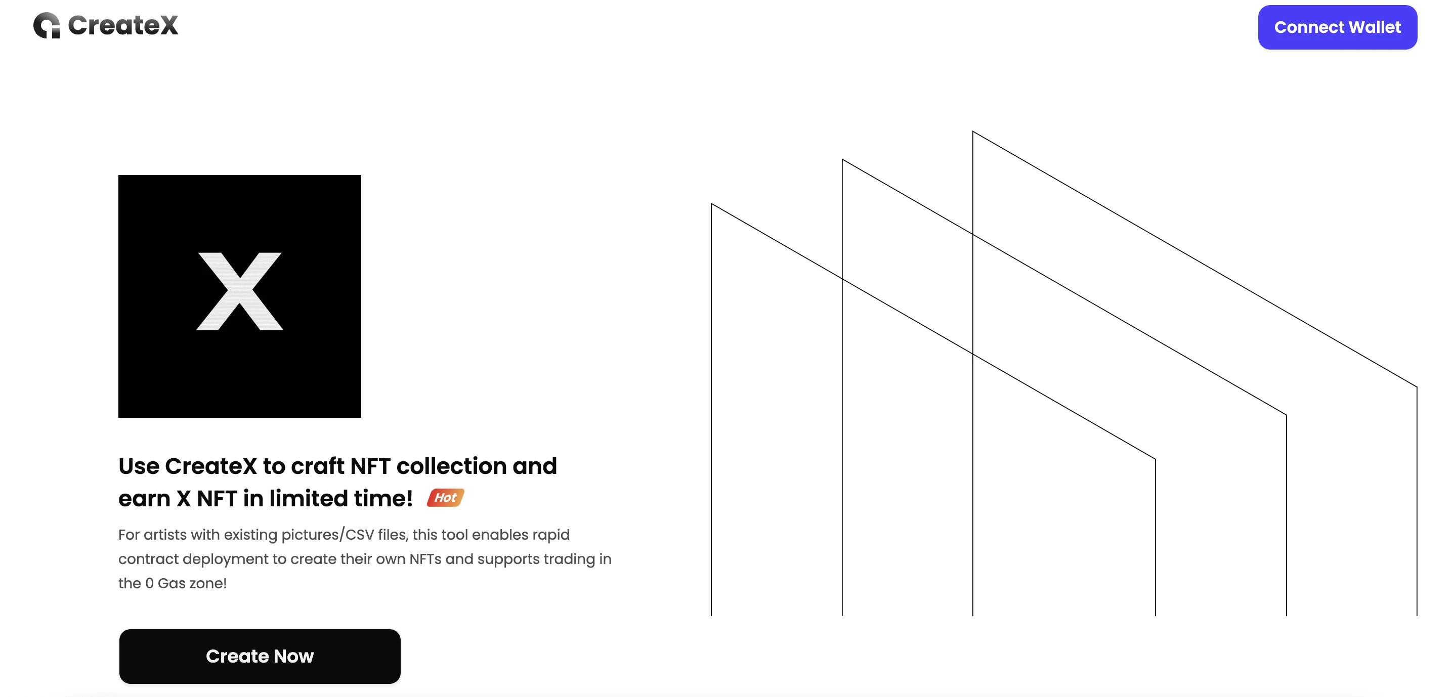 选择 Deploy testnet contract 并点击 Go Now 进行合约部署,合约部署主要是资产发行。完成 1 次测试网合约部署,获得 10 个$ALIEN 测试币空投,单地址最高 20 个$ALIEN。这里非开发人员建议使用 CreateX NFT合集部署工具,步骤简单易上手。当然对生态感兴趣的项目方及开发人员也可以填写申请表在测试网部署生态项目。