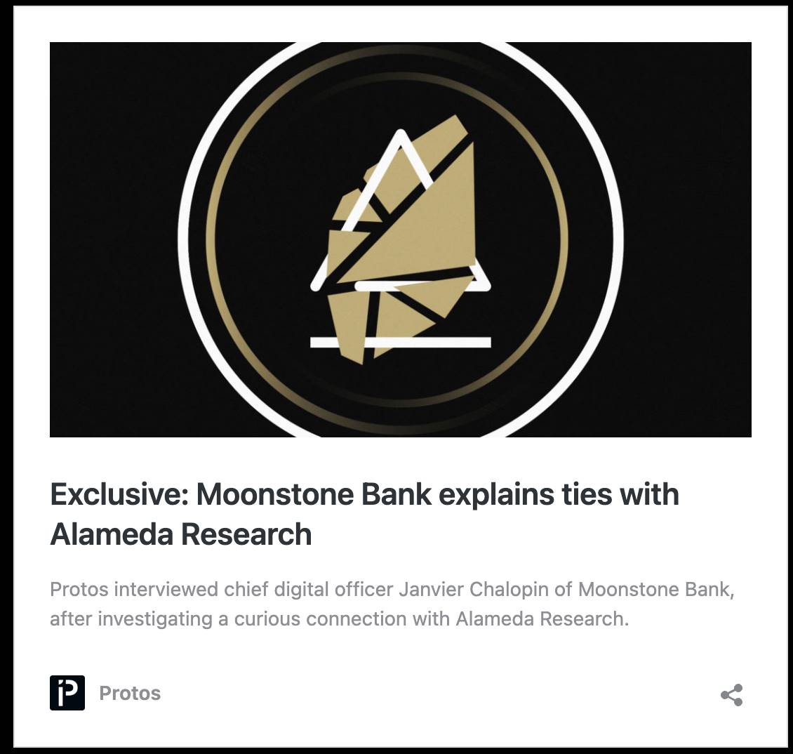 (文章详见: 独家:Moonstone 银行解释与 Alameda Research 的关系 )