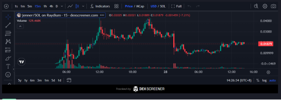 也正由于庞大的影响力,发出消息后,加密社区瞬间就引起了注意。仅仅上线半小时,Jenner代币就怒涨15倍,一小时后,代币已然涨幅70倍,成为了pump.fun上的绝对明星代币。