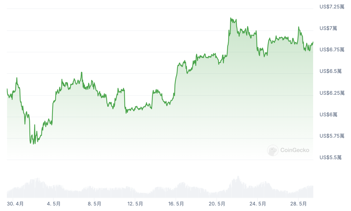 目前比特币在 6.8 万美元至 7 万美元之间高点震盪,截稿前暂报 68,556 美元,近 24 小时小跌 0.2%,什麽时候会走出明确方向还有待观察。
