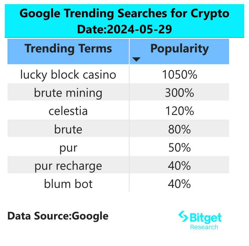 (1)欧美和中东国家热搜中:meme 代币回归主流搜索,pepe、floki、shib 出现频率较高。