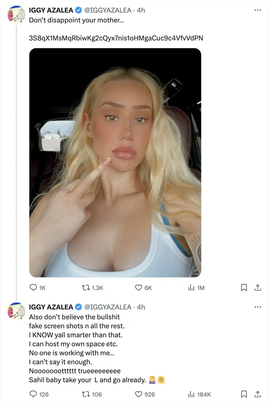 昨晚,名人币再次刷爆 meme 版块交易热度,女 rapper Iggy Azalea 在 X 上发布了一条推文称「不要让你妈妈失望」,还加上了 meme 币$MOTHER 的合约,MOTHER 则在 2 分钟爆拉三十倍。