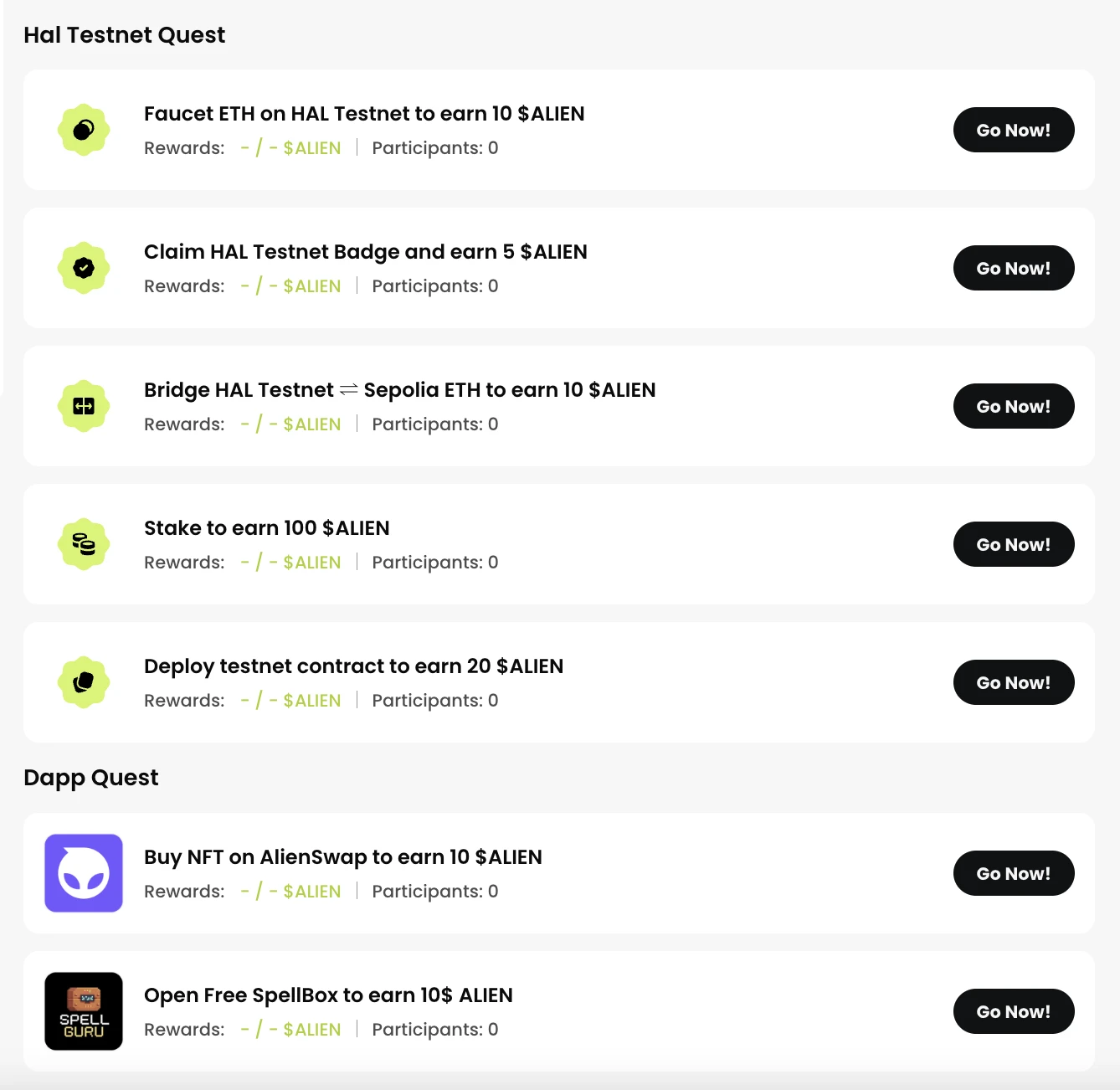 HAL 测试网任务列表如下: