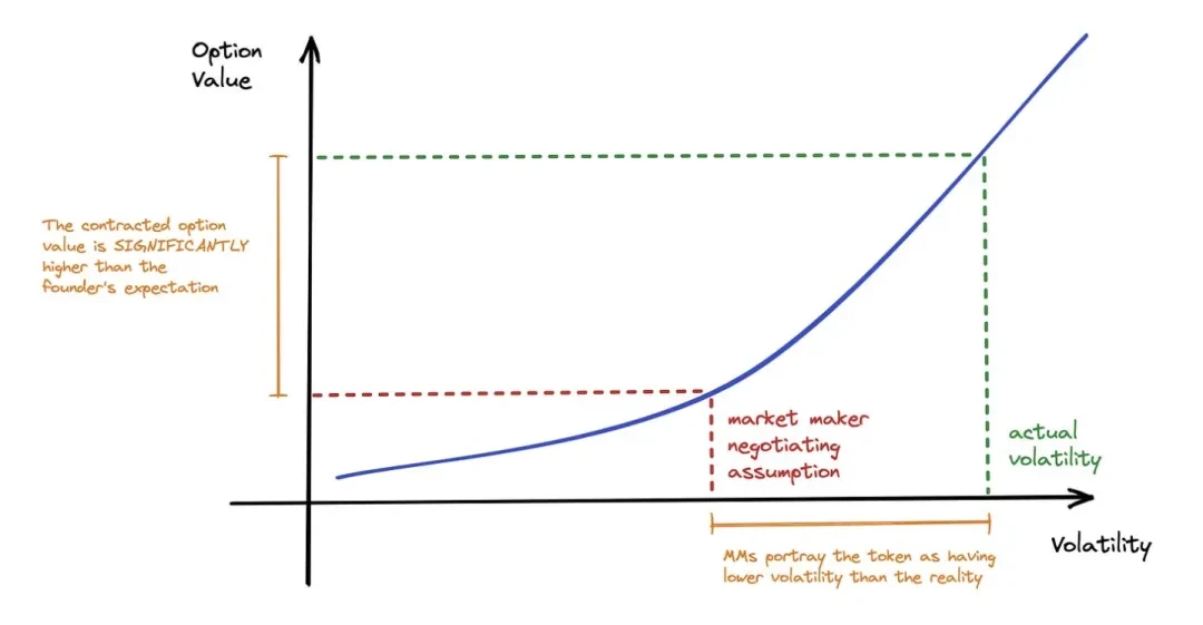 这种情况下,更适合做市商根据项目情况来自行设定 KPI,并且为了补偿做市商,项目方通常会在做市合同中嵌入一个看涨期权(Call Option)给予做市商来做代币价格风险的对冲。
