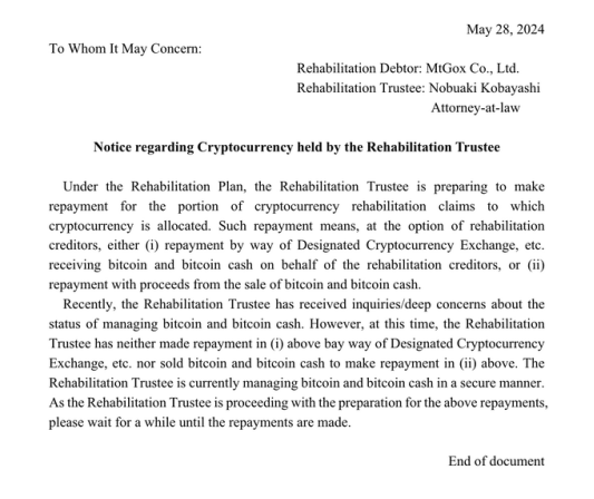 2019年,比特币已然上涨至接近10000美元,债权人也对分配时间与方案更为敏感,赔付过程一度延长。2022年,Mt. Gox 宣布其比特币偿还程序已经被法院受理,随后具体的分配方式也在23年被披露。
