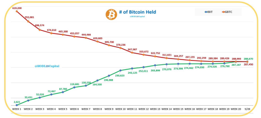 灰度GBTC和贝莱德IBI比特币持仓对比,来源:IBIT