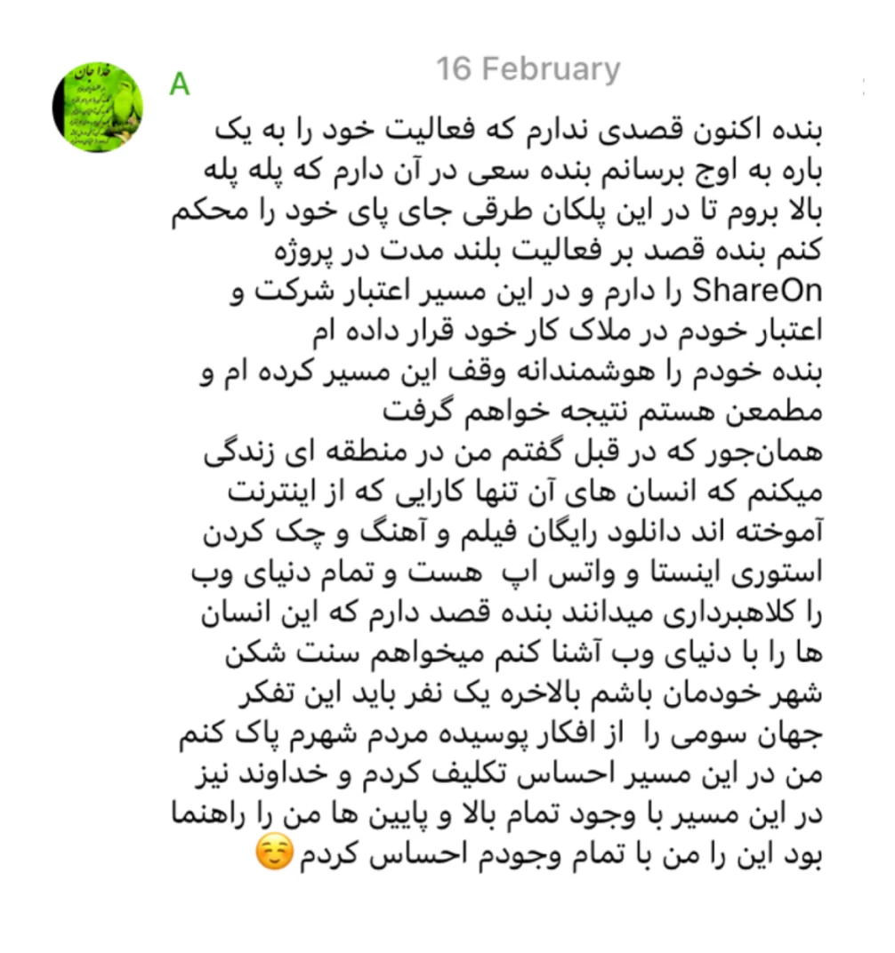 “我生活在一个人们唯一从互联网学到的东西就是免费下载电影和歌曲以及查看 Instagram 和 WhatsApp 故事的地方,大家认为整个网络世界都是骗局。我打算向这些人介绍真正的网络世界。我想成为我们中那个突破传统的人。[...]而它(ShareON)是一本指南,我全心全意地感受到了这一点。”