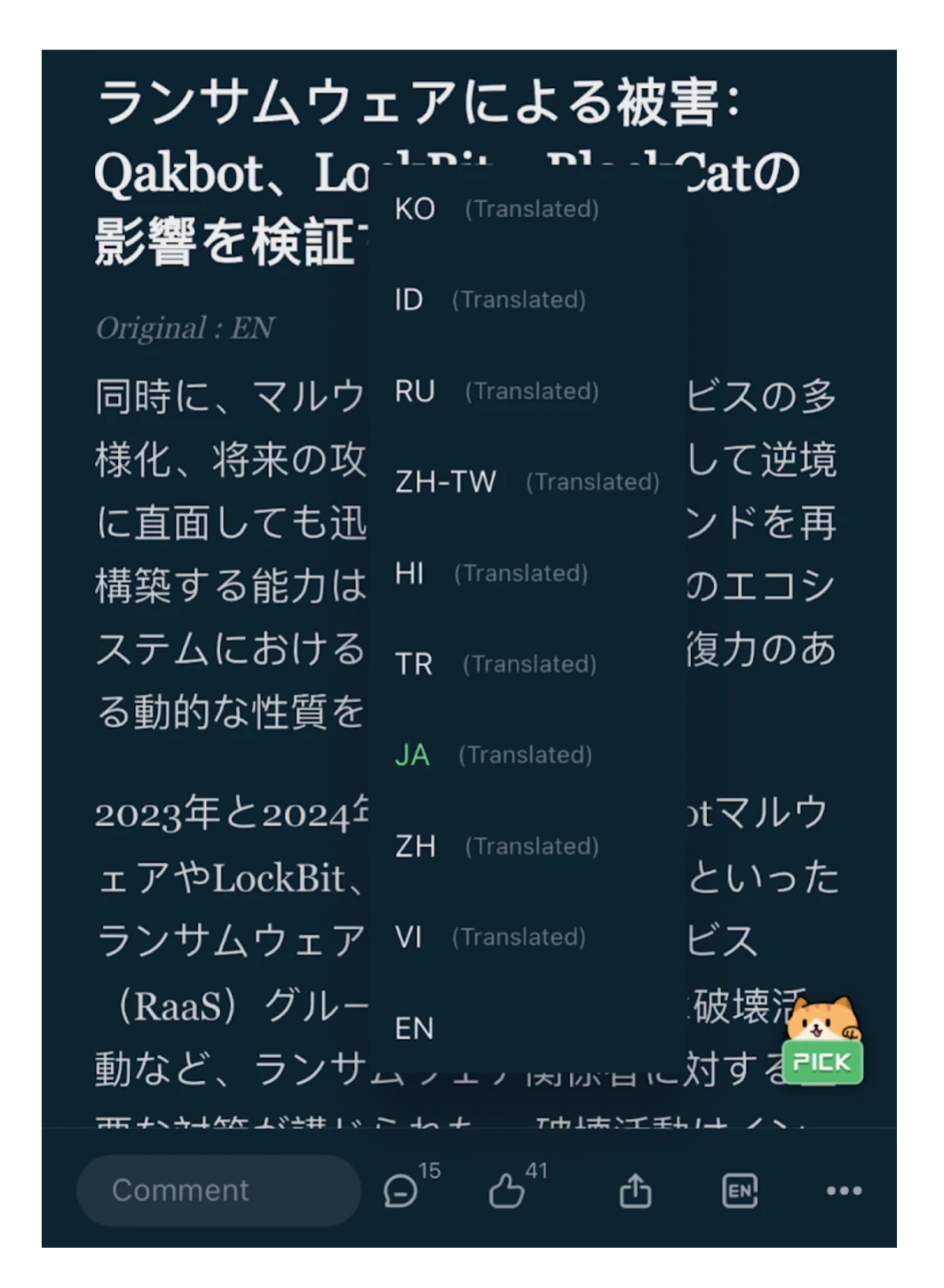 在 ReadON DAO 中,AI 的一个关键应用是提供跨语言内容翻译。目前,它支持英语、日语、韩语、俄语、印尼语、中文、印地语、土耳其语和越南语。