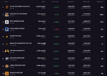 Magic Eden 数据 显示,过去 24 小时内,市值排名前十的符文大多有双位数涨幅,以下摘要焦点符文: