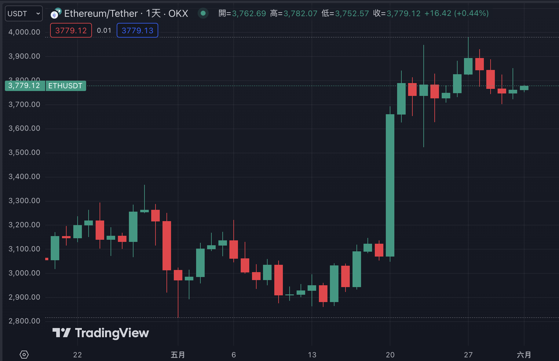 以 太坊现货 ETF 自从 获批机率大幅提升 ,且在 5 月 24 日正式获得美国证券交易委员会(SEC)的初步 批准 后,以太坊价格便强势攀升,并在本周 27 日触及 3,980 美元,创下近 2 个月以来的高点。