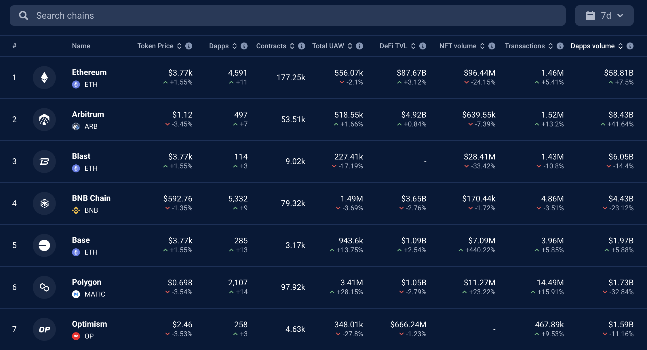 随著以太坊现货 ETF 初步获批,避免了 ETH 被归类为证券的监管风险,这使得投资者对以太坊生态的参与更加重视。根据 DappRadar 的 数据 ,以太坊过去一周的 DApp 的交易量达到 588.1 亿美元,增加了 7.5%;CryptoQuant 的数据显示,以太坊上的智能合约数量也从 5 月 20 日的 37,870 个增加到 5 月 31 日的 38,066 个;以太坊迷因币 $PEPE 也屡破新高。