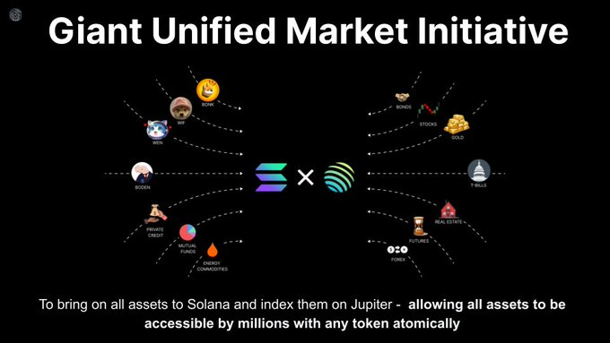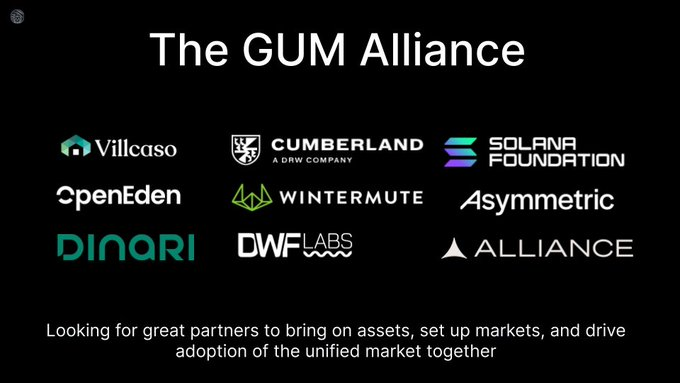 比如以 MEME 游乐园起家的 Jupiter, 𫔭始搞大一统市场, 联合多家项目与机构成立 GUM 联盟 ,无论是 MEMECOIN、RWA、股票还是外彙,通通荤素不忌,主打一个杂食。