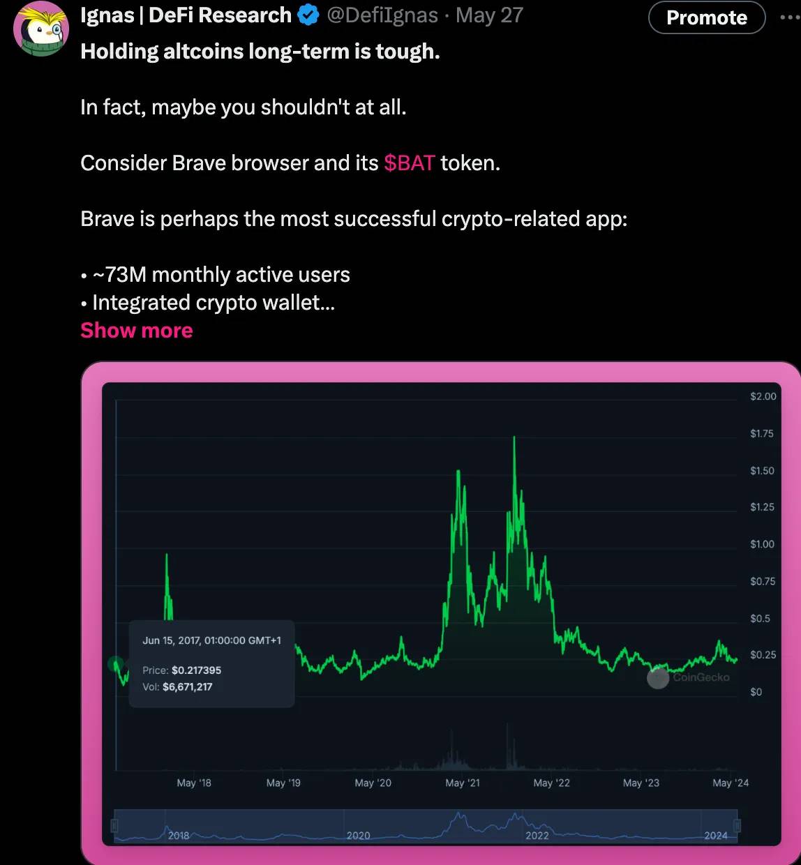 但 Brave 给我们上了一课:一个协议的成功并不一定意味着代币的表现会好。