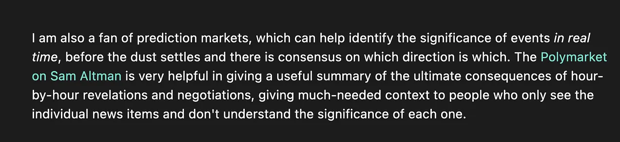 Vitalik 在多个场合赞扬了 Polymarket: