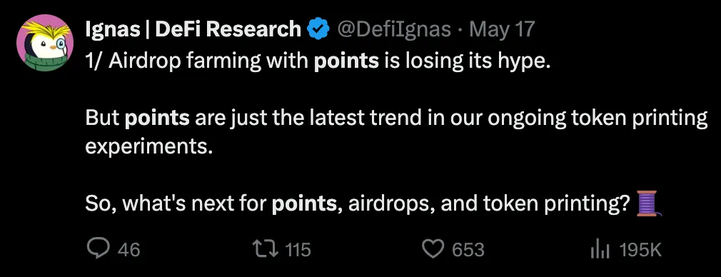 积分是一种逐渐消退的空投趋势,富人更富,因为奖励通常取决于 1)存入的资金和 2)交易量。你至少可以通过创建多个钱包并执行手动交易来赚取更多的空投。但大多数空投现在都是线性的,而 LayerZero 的反 Sybill 努力可能正在改变游戏。