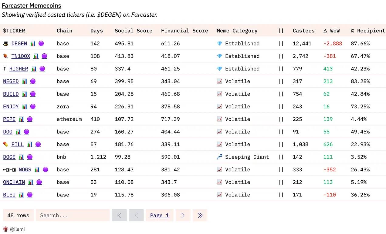 我作为早期 Farcaster 用户获得了几千美元的 DEGEN 空投。事实上,Farcaster 还有 47 个你从未听说过的“场景币” - 社交 Meme。