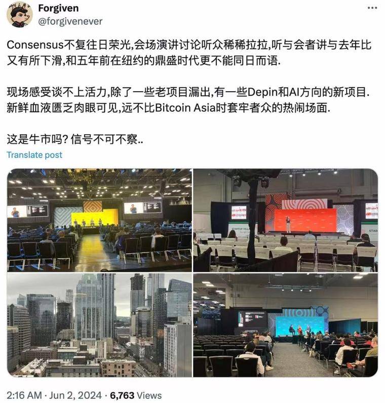 而据在场网友的参会观感来看,主题演讲听众门可罗雀,和 5 年前纽约共识大会的鼎盛场景不可同日而语。