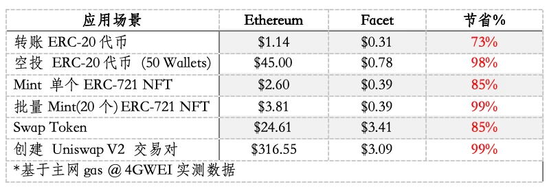 来源:Facet 团队, 注意比较常见智能合约场景中 gas 是为了证明智能合约同步执行并不意味着成本高昂