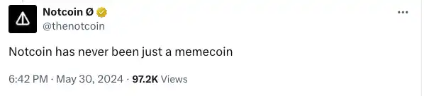不过,此前关于「NOT meme 能否助力 TON」的文章已经很多,而 Notcoin 官方则表示自己「从来都不只是一个模因币」