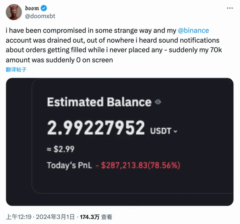 昨 (3)日傍晚,一个推特名为 @CryptoNakamao 的用户在 X 平台上讲述了自己币安帐户资金被盗窃一空的惨痛经历。他表示在骇客没有拿到他的币安帐号密码以及 2FA 认证码的情况下,仅通过「对敲交易」的方式,就盗走了他在币安上几乎全部的 100 万美元资金。