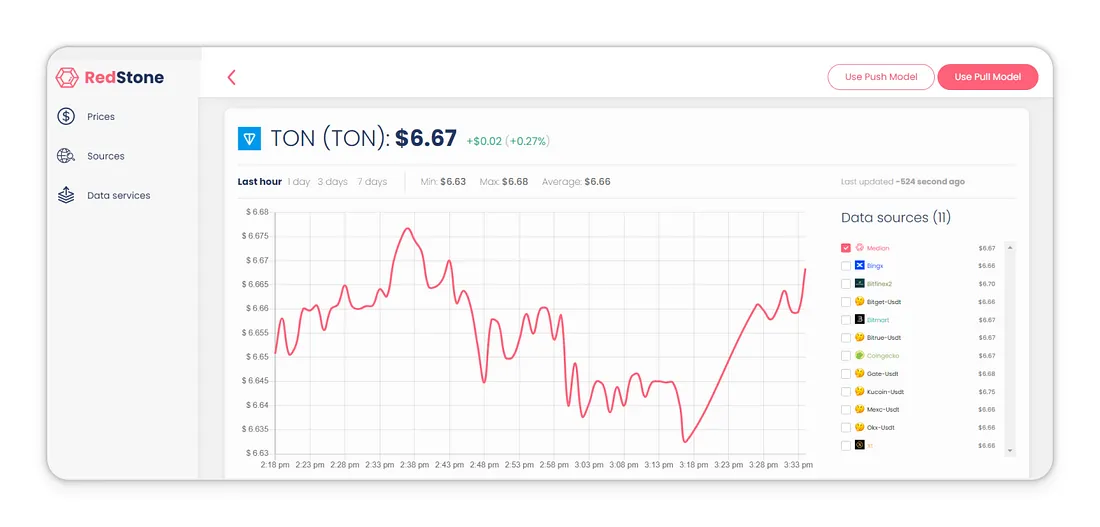 RedStone 的 Toncoin 价格馈送,结合了来自 11 个外部来源的数据