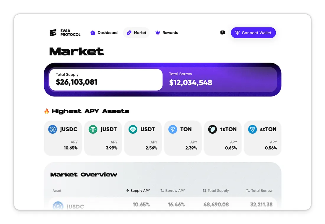 Evaa Protocol 在 TON 主网启动。截至本报告,Evaa 的总供应量为 2610 万美元,总借款量为 1203 万美元。