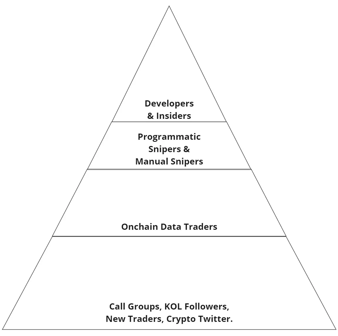 链上交易是一场开发者、狙击者、链上数据交易者和其他人的流动性游戏。随着链上领域进入的流动性减少,参与者之间的竞争变得更加激烈,结果是金字塔顶端的那些人收获了大部分的回报。
