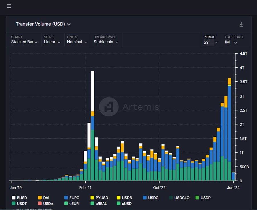 我们已经发行了超过 1600 亿美元的稳定币(其中 90% 以上是 Tether 和 USDC),每月交易量达到 2-3 万亿美元以上。 即时、全球性的 24/7 实时支付(而不是 T+ 1 天、周末关闭)是一项巨大的创新。由于协调原因,传统基础设施难以现代化。