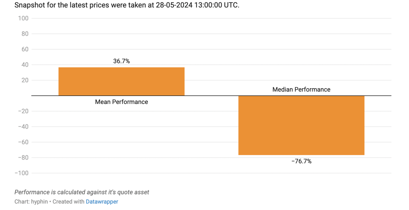 这些代币中只有约 13.2% 现在的价格高于在去中心化交易所上市之前的价格。