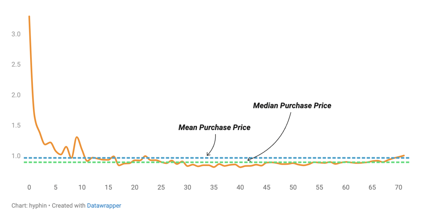 在大多数情况下,价格在 12 小时后保持相对稳定,仅在销售临近结束时显示出需求增强的迹象。图表上突出显示的平均和中位成本基础表明大多数参与者符合类似的条目,印证了此定价模型试图说明的概念。