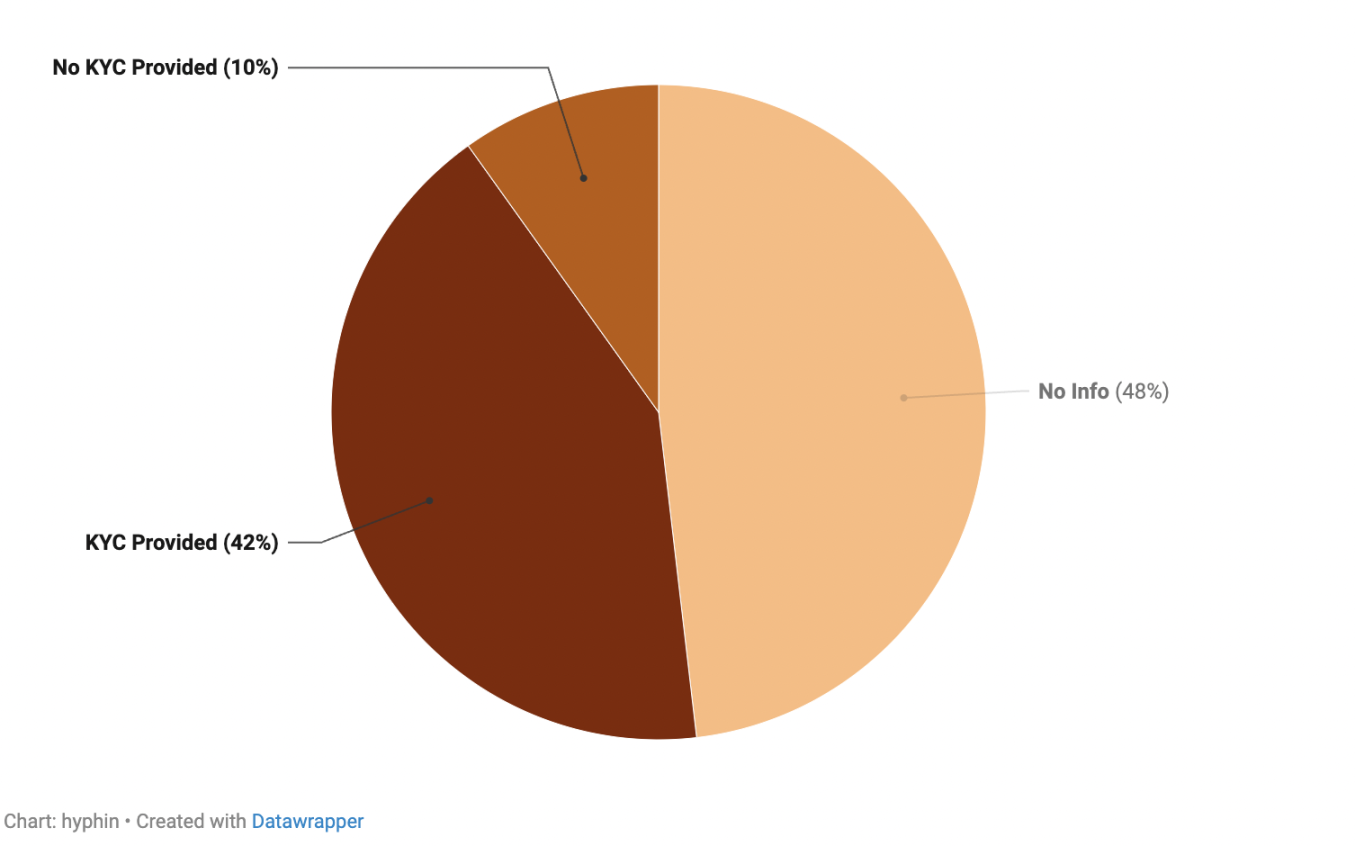 由于用户界面随时间发生变化,一些过去的销售事件没有显示任何与 KYC 状态相关的公开信息,因为当时没有记录和相关要求。在最近的产品中,绝大多数项目都有一个被人肉搜索过的团队。