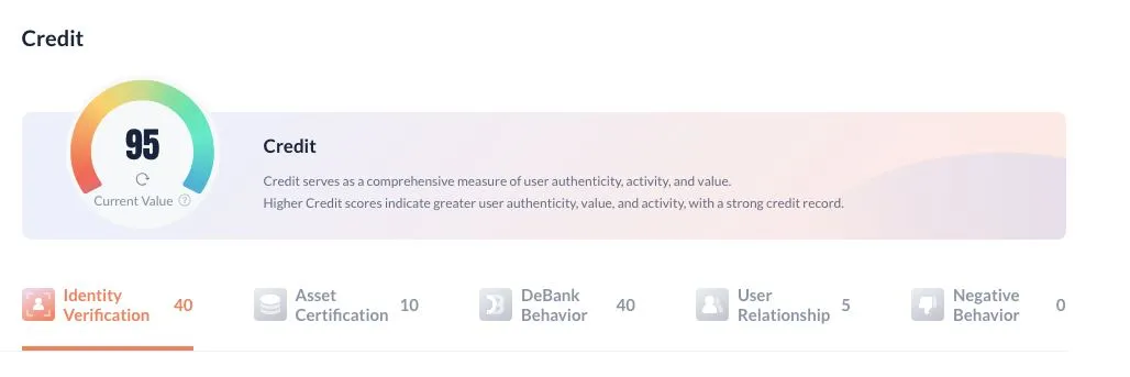 信用评分是“用户真实性、活动性和价值的综合衡量标准”。 更高的评分意味着更多的活动和用户真实性 ,但在当前状态下,DeBank 信用评分并不能作为声誉的代理。