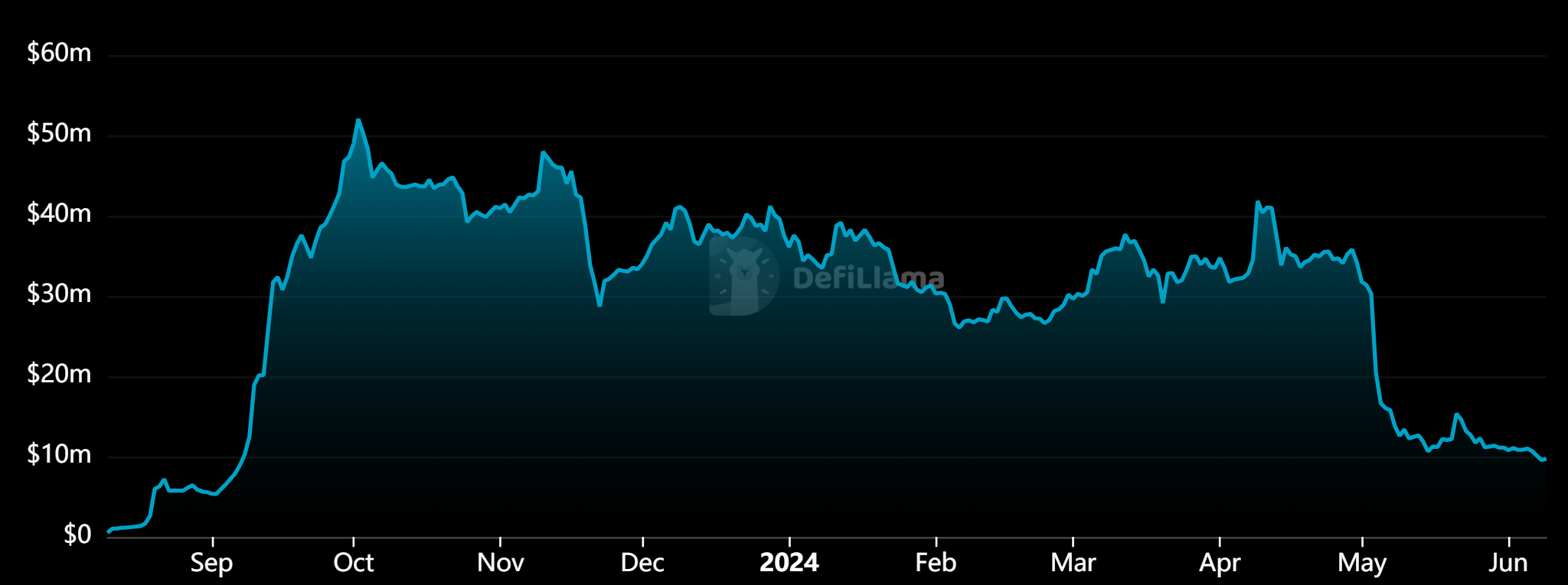 Defillama 数据 显示 ,Friend.tech 在去年 10 月 TVL 曾达到 5204 万美元的高峰,但此后𫔭始逐步下跌,并自今年 5 月起迅速急跌,目前 TVL 仅剩约 973 万美元,表明 V2 和空投代币未成功吸引用户和资金回流。