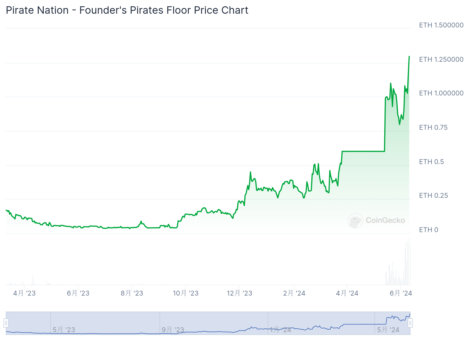 Pirate Nation宣布发币!免费Mint创世海盗NFT地板价暴涨1.3枚ETH、单周大涨50%