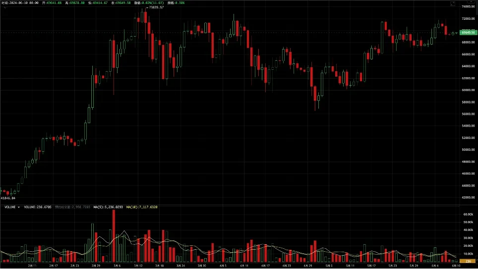 6 月 4 日美国 ETF 单日净流入 8.87 亿美元,创 1 月份 ETF 通过以来第二大单日净流入记录;上周,美国 ETF 整体净流入 18.29 亿美元,也是自 3 月以来的最大净流入周。香港 BTC 现货 ETF 上周净流入约 4200 万美元,总量维持在 2.9 亿美元,与 4 月底的规模相近。