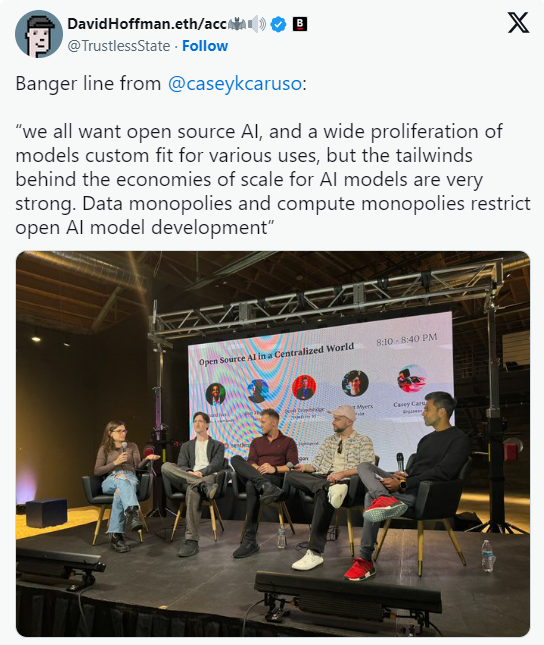 加密货币技术为开源 AI 提供了新的途径。它为 AI 开发创建了一个开放性的市场,确保可以开源访问的前提下,通过代币进行激励。