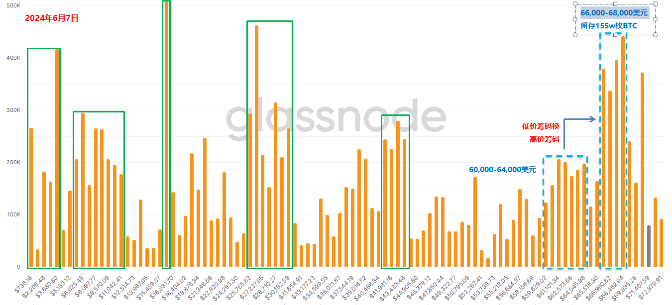 比特币链上数据:6.4万镁是强力支撑,散户筹码在6.6万-6.8万美元区间