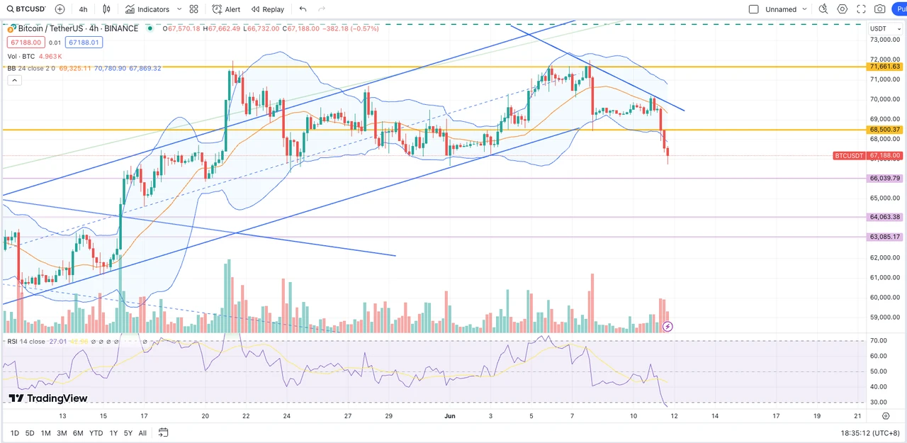 事实上,接下来的通胀数据和美联储利率前景展望对 BTC 来说至关重要,近期美国强劲的经济数据以及比特币和美债收益率之间不断上升的负相关性让投资者在重大经济数据之前有理由警惕潜在的波动加剧。过去 24 小时里,BTC 在短暂回升到 70000 美元关口很快便出现连续下跌,至一周低点。如此行情着实令人担忧,尽管 BTC 现货 ETF 在上一周连续大量的注入资金,也并不能在“关键 36 小时”的当下为投资者提供足够的信心支撑。Paradigm 的 Anand Gomes 评论道,加密市场就像一个瘾君子,不断需要利好消息来支撑,“No news is bad news in crypto”。