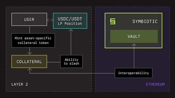 抵押品通过使用于保护 Symbiotic 网络安全的资产能够在 Symbiotic 协议本身之外持有(例如,在以太坊之外的网络上持有 DeFi 头寸)来提高资本效率并扩大规模。