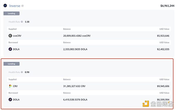 随着多家机构、多名华人大佬提供资金援助,Egorov的场外筹款交易顺利进行,Curve在各大DeFi平台上的债务健康度也有所提升,在Aave V2的健康系数上升至1.87,Fraxlend则为1.8。