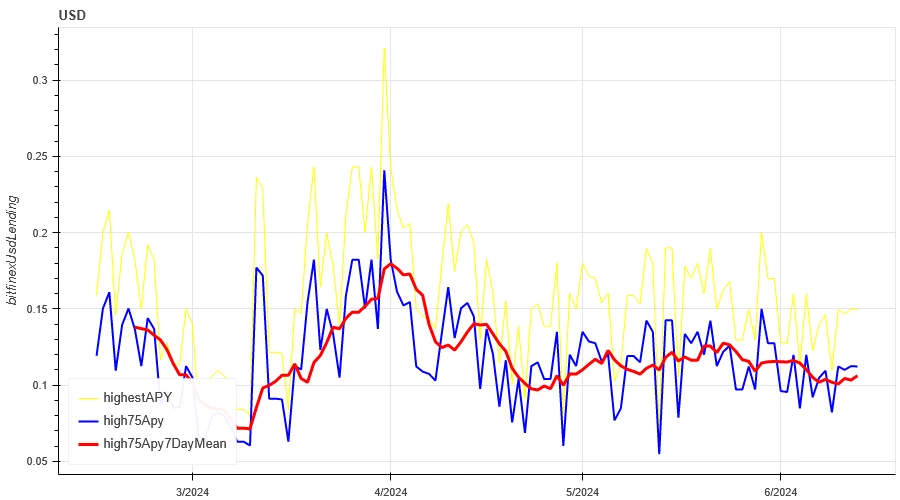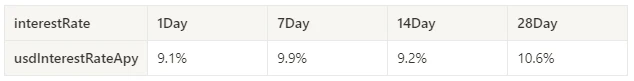 过去一周 USD 放贷年化收益平均为 10.4% ,短期利率回升至 11.2% 左右。