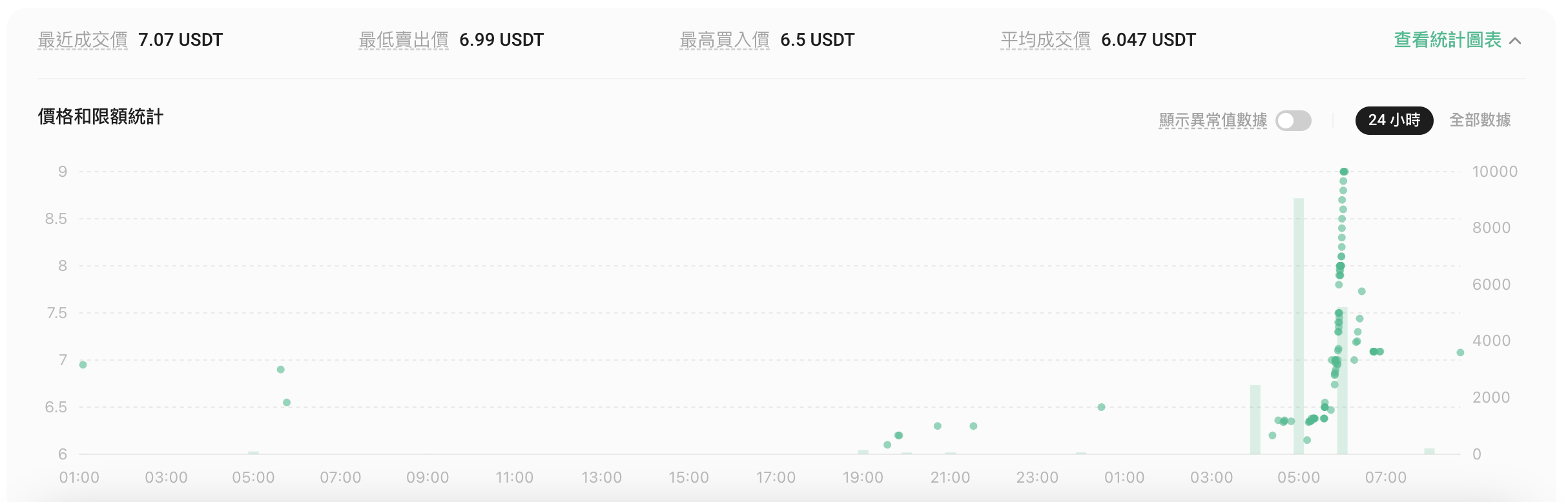 虽然 $ZRO 还未正式上缐,但已先行在 Kucoin、Whale Market 等平台的盘前市场𫔭放交易,据 Kucoin 数据 显示,$ZRO 的最新成交价为 7.07 美元,平均成交价为 6.047 美元。若以平均价格计算,意味著 LayerZero 的 FDV 约 60 亿美元,超过 Wormhole($W)的 45 亿美元 FDV。