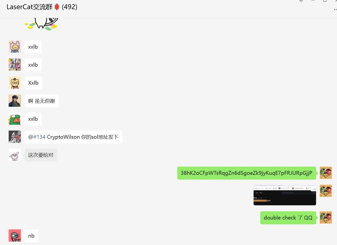 CryptoWilson 发推 分享 截图,表示他是透过 LaserCat 交流群群友的协助,把资金找回来,他还发红包 致谢 ,并 表示 :
