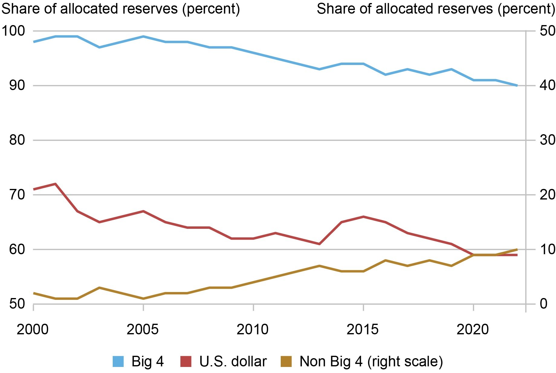 纽约联準银行在 3 日发布报告 指出 ,美元在官方储备的比重正在下降,各国央行黄金持有比重则在增加,但该报告却称这一趋势仅限于「少数国家」。