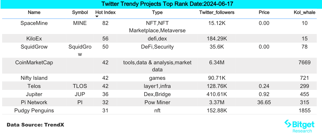 (2)欧美地区,关注近期热门代币和项目,包括 Notcoin、Monad、TON 等;