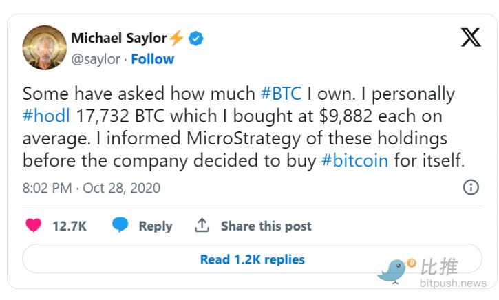 1989 年,他参与联合创办了软件公司 MicroStrategy。随后,该公司大量购买了比特币作为公司财务资产。截至 2024 年 3 月,据报道,MicroStrategy 持有的比特币价值已达 130 亿美元,而 Saylor 本人所持有的加密货币也超过了 12 亿美元。值得一提的是,他曾在 2020 年透露自己持有 17732 枚比特币。