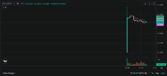 数据显示,ZK链上开盘最高触及0.4236美元,在上线后已回落0.29 美元,上线后下跌30%。或许受此影响,币安与Bitget后续均宣布推迟上线ZK。目前,ZK在Bitget与币安均已上线,Bitge开盘触及0.34 美元,现报价0.26美元,而Binance开盘触及 0.295 美元,现报价0.26 美元,价格远低于此前市场预期。